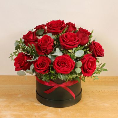 The Allure Hatbox is a creative hat box arrangement full of gorgeous large headed red roses. This beautiful bouquet of fresh hand tied flowers is perfect for any occassion.