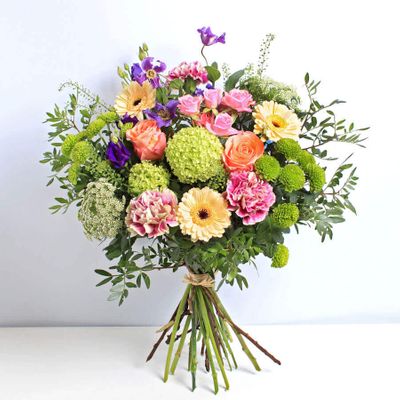 A handcrafted and stunning assortment of Clematis, Germini, Carnation, Chrysanthemum, Dill and Roses that are sustainable and ethically sourced. This bouquet will be handcrafted by an experienced florist, order for same day delivery by hand, or next day delivery via our courier.