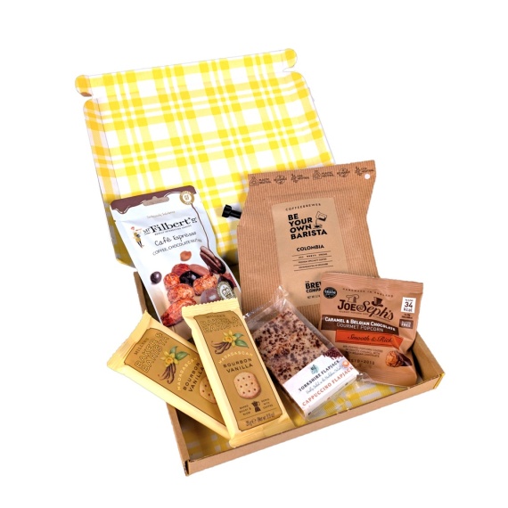 For those who live for their next cup, the Penny Post Coffee Lover brings together rich coffee flavours with indulgent treats. From Colombian coffee to chocolate popcorn and a hot chocolate spoon, it’s a delicious celebration for caffeine enthusiasts. This hamper contains 6 items: Cappuccino Flapjack 95g Colombia Coffeebrewer (100% Arabica Ground Coffee) Espresso Nut Mix 75g Madagascar Bourbon Vanilla Twin Pack Biscuits 25g Popcorn with Caramel & Belgian Chocolate 7g Limited Edition Hot Choc Spoon 40g Packed in a branded letterbox friendly gift box.